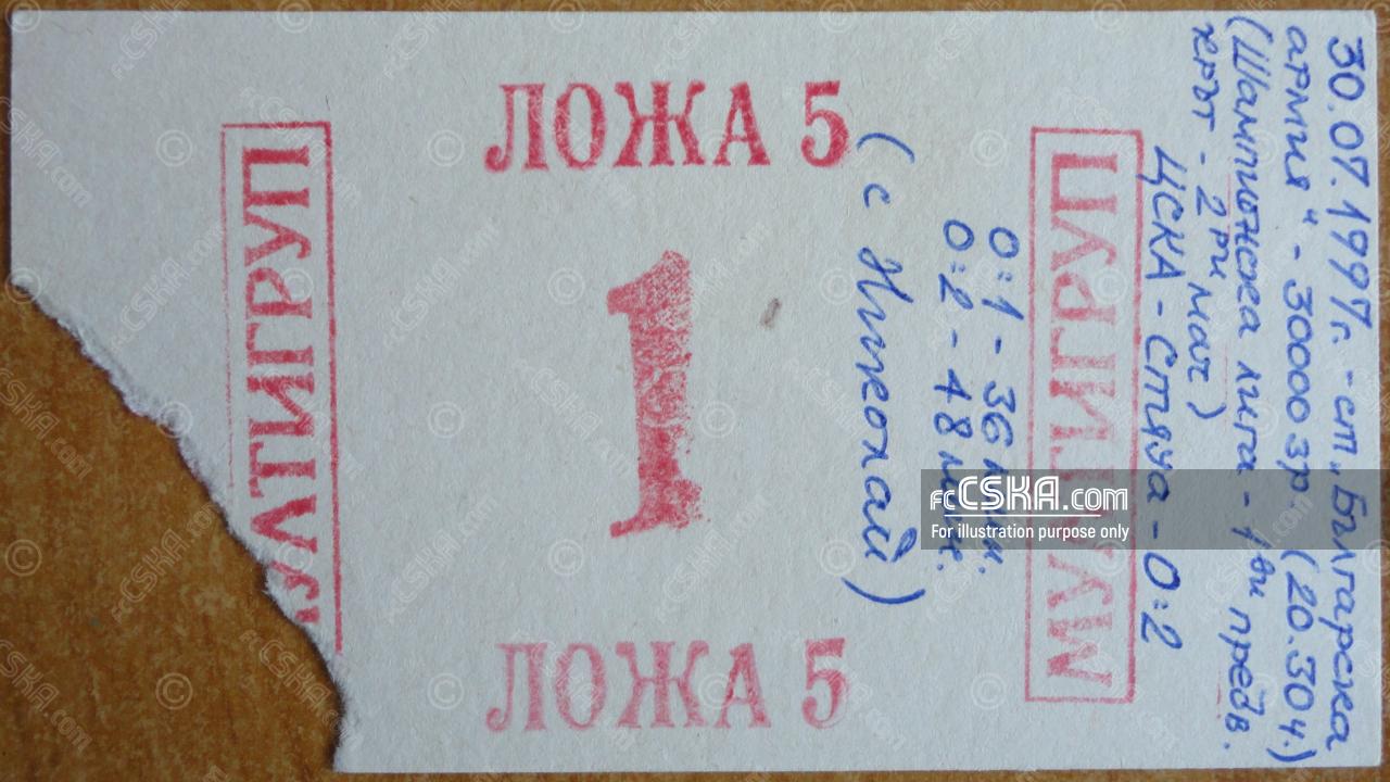 ЦСКА загуби от Стяуа (Букурещ) с резултат 0:2 във футболна среща от I предварителен кръг — реванш на Шампионска лига 1997/98 играна на 30 юли 1997 г. в 20:30 ч. на стадион „Българска армия“ в/във София.