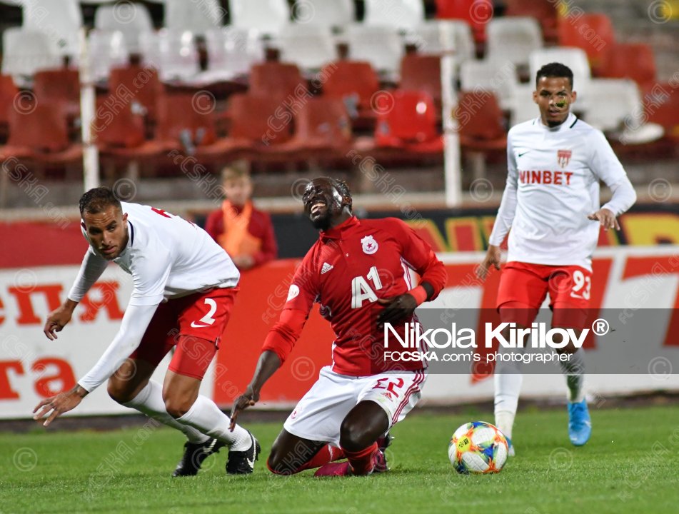 В 53-та минута центриране в полето на ЦСКА, топката се удря в ръката на Албентоса, но след рикошет в главата на испанеца, дузпа не може да се свири, след това удар на Ната, избит, след това и Даскалов пробва да шутира, отново защитник в червено се намесва.