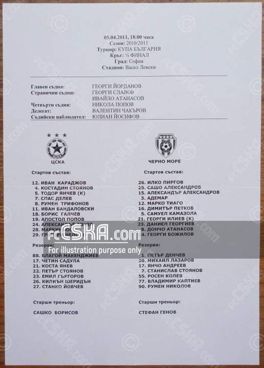 | Турнир: | Купа на България 2010/11 (Четвъртфинал) |