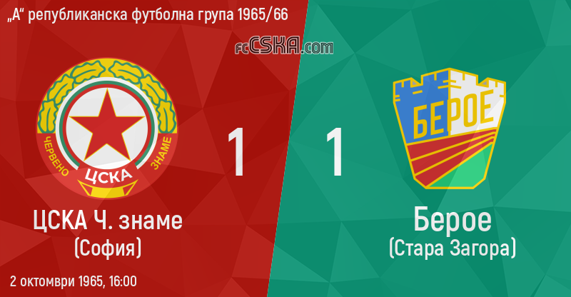 Вихрушката пред вратата на „Берое“ не стихваше. Един след друг армейските нападатели изникваха в удобни позиции и поддържаха непрестанната канонада. Какъв неточен мерник! Какво досадно впечатление! От 5-6 метра топката летеше далеч от очертанията на вратата. С една дума – много шум за нищо. С разумни действия старозагорци се мъчеха да контрират. Жеков застана зад топката да изпълни пряк удар. Срещу него бе построена „стена“. Фалцов удар! Коженото кълбо се завъртя покрай главите на армейските защитници и се изсипа неспасяемо в горния ъгъл – 0:1. Браво, така се стреля! Пет минути след почивката и Я. Кирилов заслужи същата похвала. Той се вмъкна в наказателното поле на противника и стреля силно – 1:1.