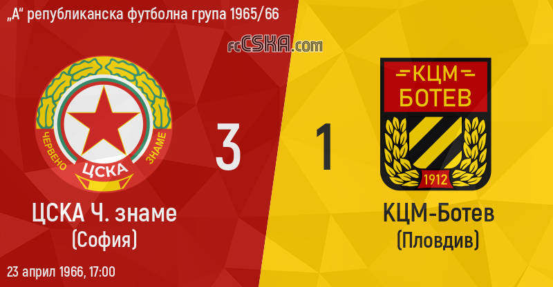 Над футболистите от пловдивския „Ботев“ виси реалната опасност да отпаднат от групата и затова те полагат усилия да се измъкнат от незавидното си положение. Това пролича във вчерашния им мач срещу отбора на ЦСКА „Червено знаме", но само ... в първото полувреме. Те играха по-добре от армейските футболисти, опасно атакуваха и това естествено им донесе гол в 13-та минута. Ботевци продължиха настойчиво, за да закрепят първоначалния си успех, още повече, че състезателите на „Червено знаме“ играха твърде разпокъсано, отбраната им често се огъваше, а нападателите особено Цанев, прекаляваха със соловите си прояви.