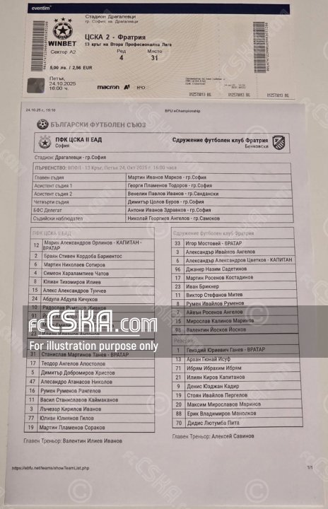 ЦСКА II победи Фратрия (Бенковски) с резултат 1:0 във футболна среща от 13-и кръг на Втора професионална лига 2025/26 играна на 24 октомври 2025 г. в 16:00 ч. на стадион „Драгалевци“ в/във София.