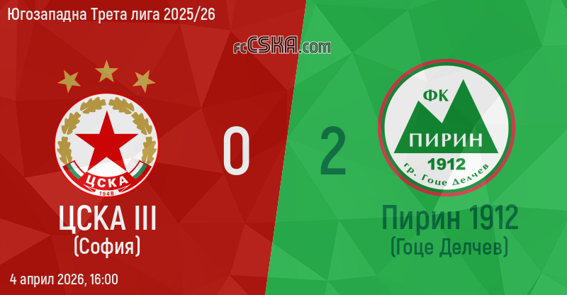 | Турнир: | Югозападна Трета лига 2025/26 (26-и кръг) |