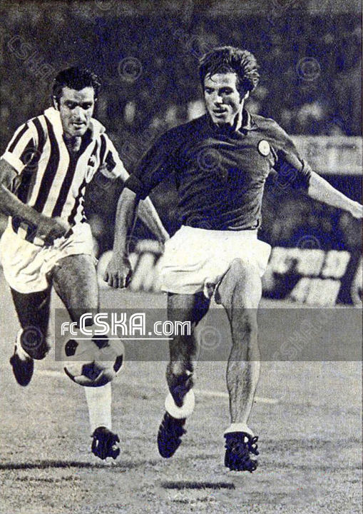 След като отразнха първочачалния щурм на „бяло-черните“, българските футболисти постепенно пренесоха играта в полето пред Дзоф към чиято врата насочиха удари Пенев, Марашлиев и Колев. Така се стигна до 39-та минута, когато при нападение на Ювентус след високо отправена топка от Бетега, Фурино я посрещна с глава и изпрати в мрежата на Филипов.