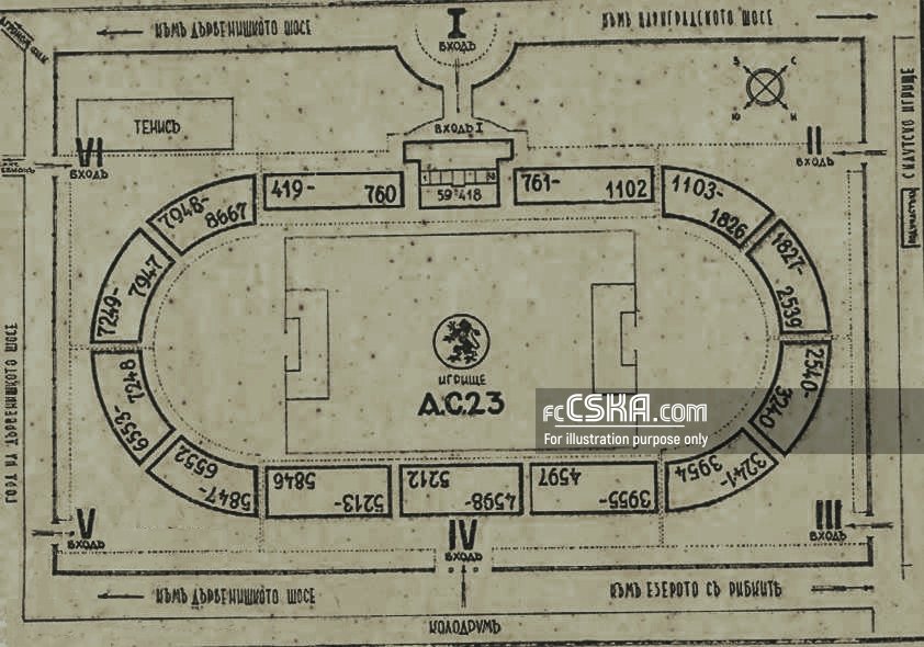 Към 1940 г. от северна и южна страна са изградени трибуни, което прави стадиона напълно завършен. Цялата сума за построяването на стадиона е 3 милиона лева, като в основната си част е платена от АС-23 и негови привърженици, и минималната помощ на държавата (дарение от 55 000 лева и дървен материал). Към края на строителните дейности стадионът може да приема 18 000 зрители.