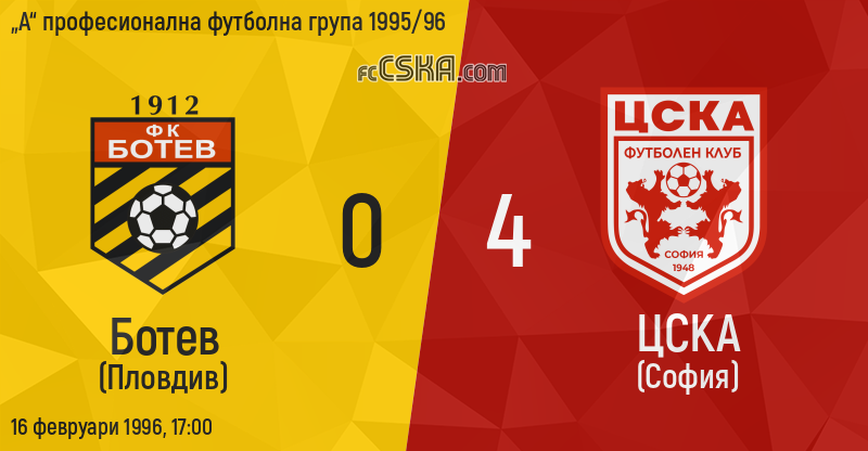 | Турнир: | „А“ професионална футболна група 1995/96 (16-и кръг) |