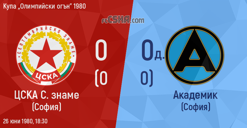 ЦСКА „Септемврийско знаме“ завърши наравно с Академик (София) с резултат 0:0 във футболна среща от Полуфинал на Купа „Олимпийски огън” 1980 играна на 26 юни 1980 г. в 18:30 ч. на стадион „Васил Левски“ в/във София. Голмайстори за Армейците са Спас Джевизов (45′ от дузпа), Цветан Йончев (45′ от дузпа), Ружди Керимов (45′ от дузпа) и Георги Велинов (45′ от дузпа).