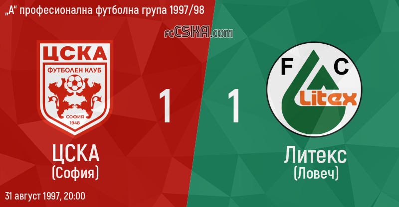 ЦСКА завърши наравно с Литекс (Ловеч) с резултат 1:1 във футболна среща от 4-ти кръг на „А“ професионална футболна група 1997/98 играна на 31 август 1997 г. в 20:00 ч. на стадион „Българска армия“ в/във София. Голмайстор за Армейците е Ивайло Андонов (88′).