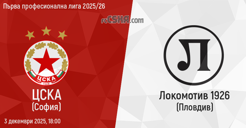 ЦСКА ще играе с/със Локо Пд във футболна среща от 18-и кръг на Първа професионална лига 2025/26 на 3 декември 2025 г. в 18:00 ч. на стадион „Васил Левски“ в/във София. Мачът ще бъде предаван на живо по „Диема спорт”.
