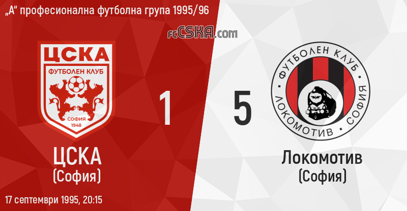 ЦСКА загуби от Локомотив (София) с резултат 1:5 във футболна среща от 6-и кръг на „А“ професионална футболна група 1995/96 играна на 17 септември 1995 г. в 20:15 ч. на стадион „Васил Левски“ в/във София. Голмайстор за Армейците е Петър Жабов (13′).